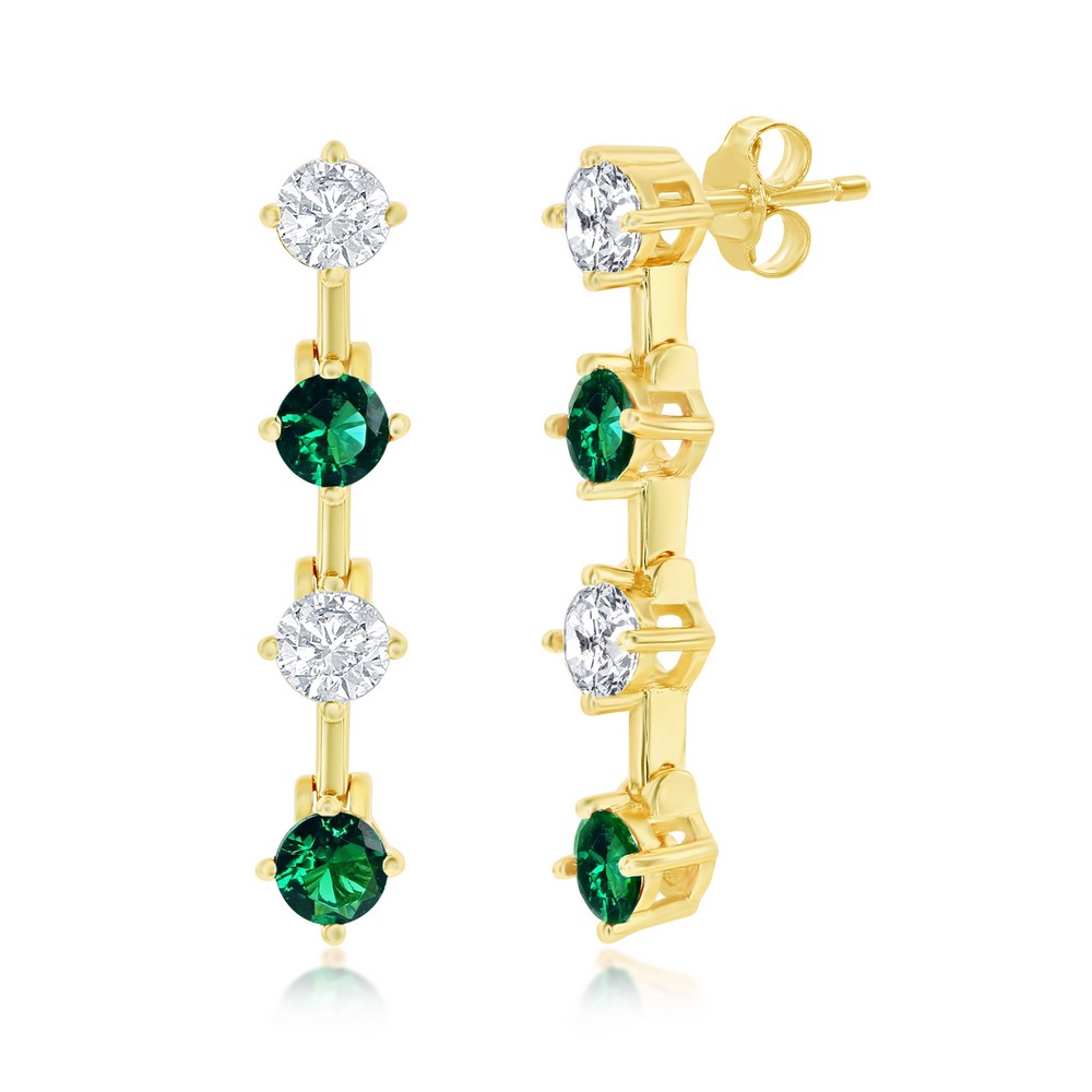 Sterling Silver Round White & Emerald CZ Long Earrings – Gold Plated
