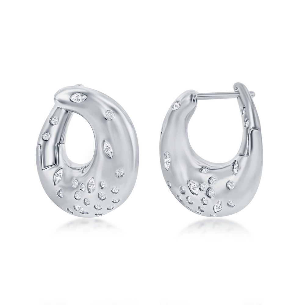 Sterling Silver Scattered CZ Puffed Earrings