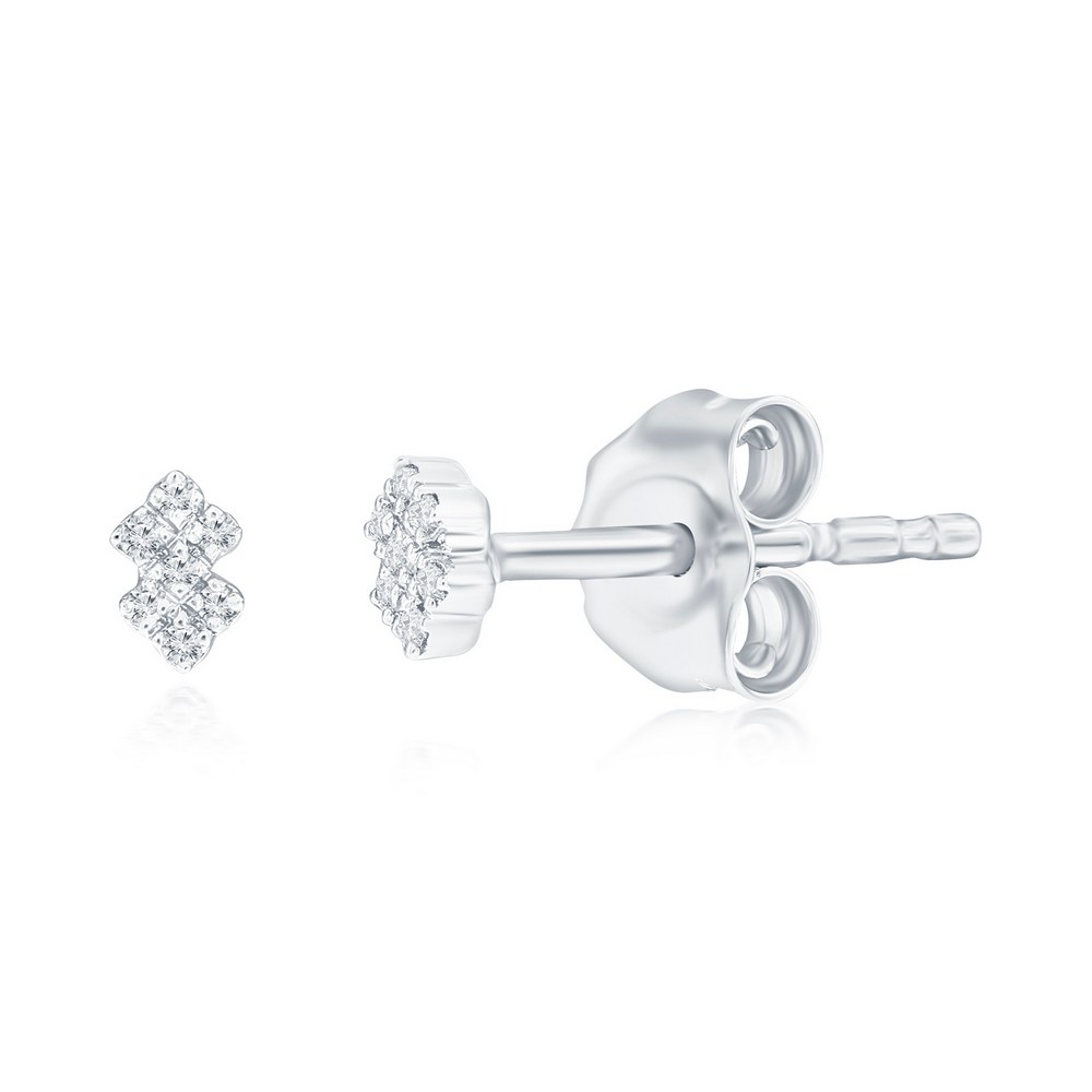 Sterling Silver Small Diamond Studs – (14 Stones)
