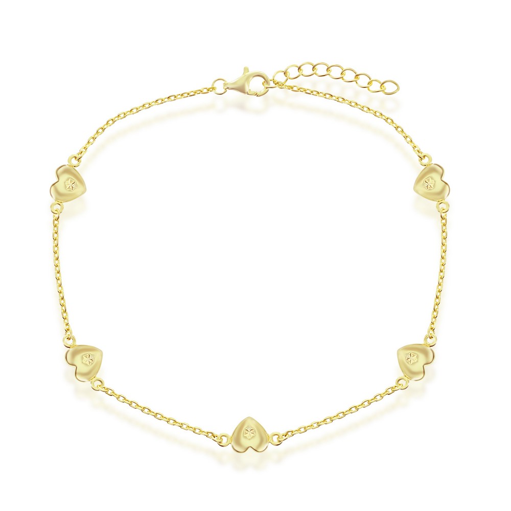 Sterling Silver, Station Hearts Anklet – Gold Plated