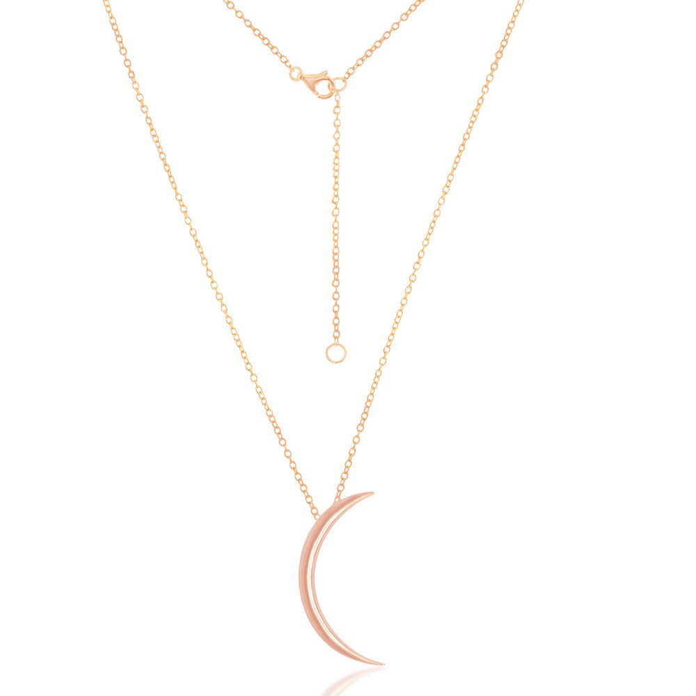 Sterling Silver Thin Crescent Moon Necklace – Rose Gold Plated