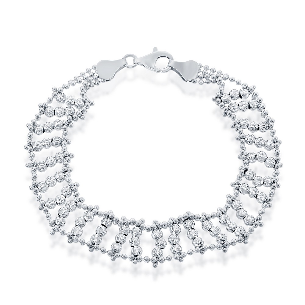 Sterling Silver Triple Row Diamond-Cut Moon Bead Bracelet