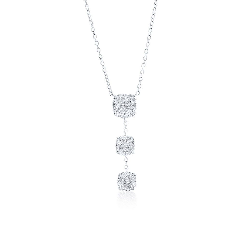 Sterling Silver Triple Square, ‘Y’ Design Diamond Necklace – (147 Stones)
