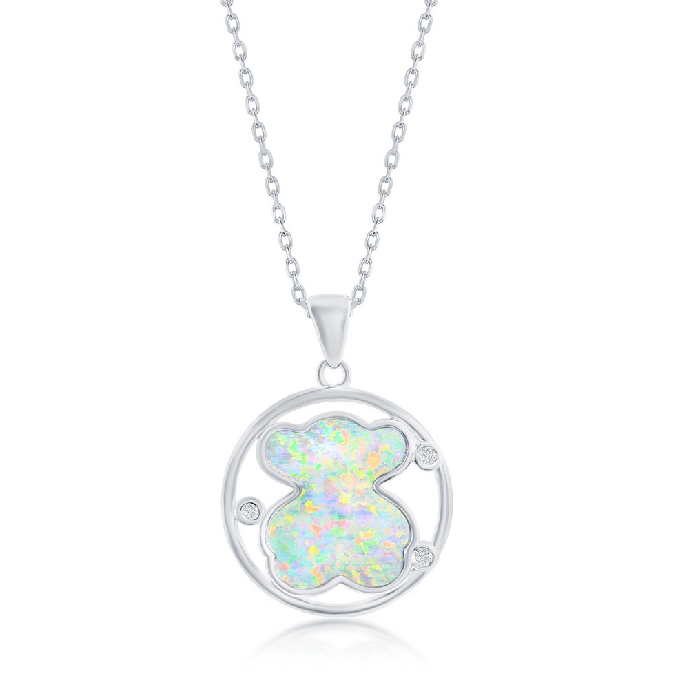 Sterling Silver White Inlay Opal & CZ Circle Necklace