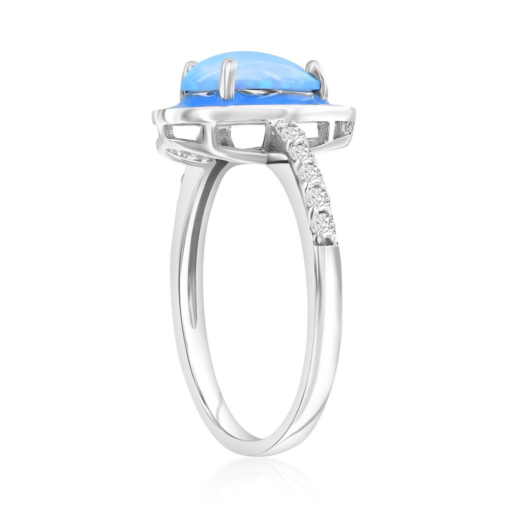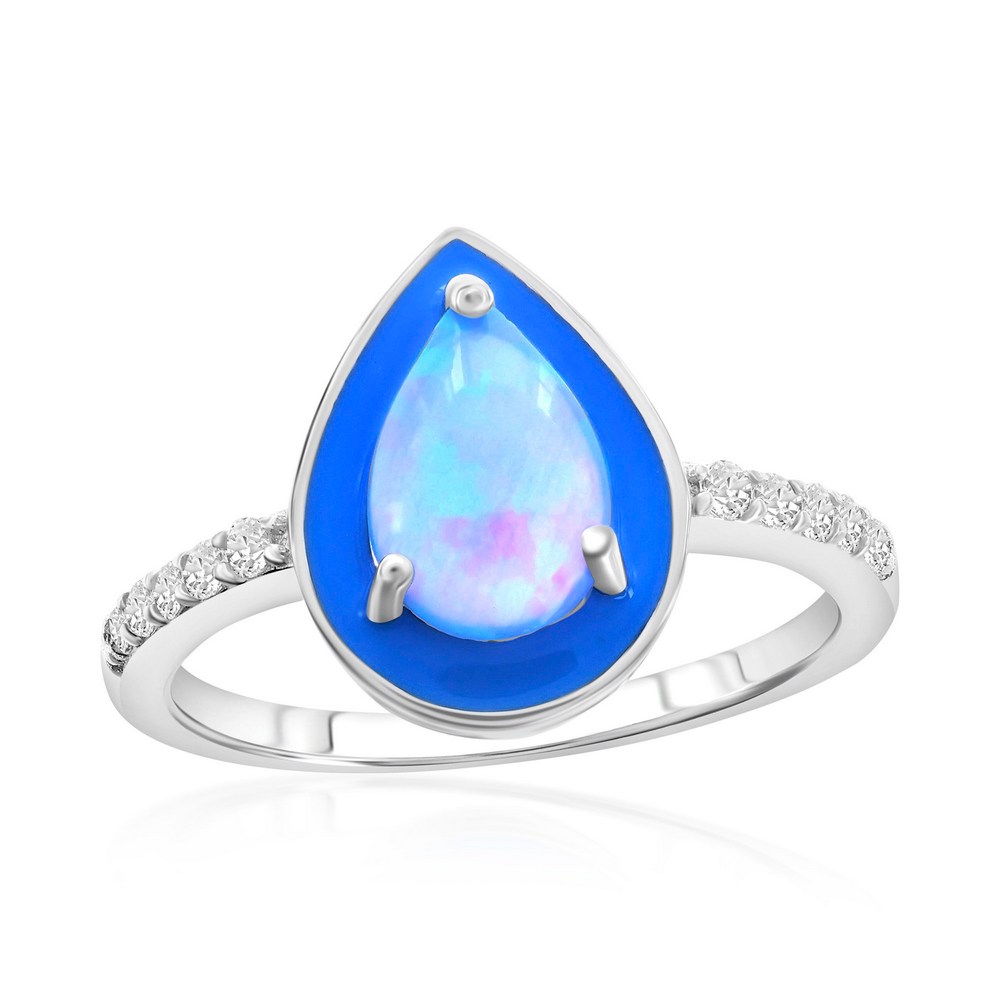 Sterling Silver White Opal & Blue Enamel Pearshaped CZ Ring