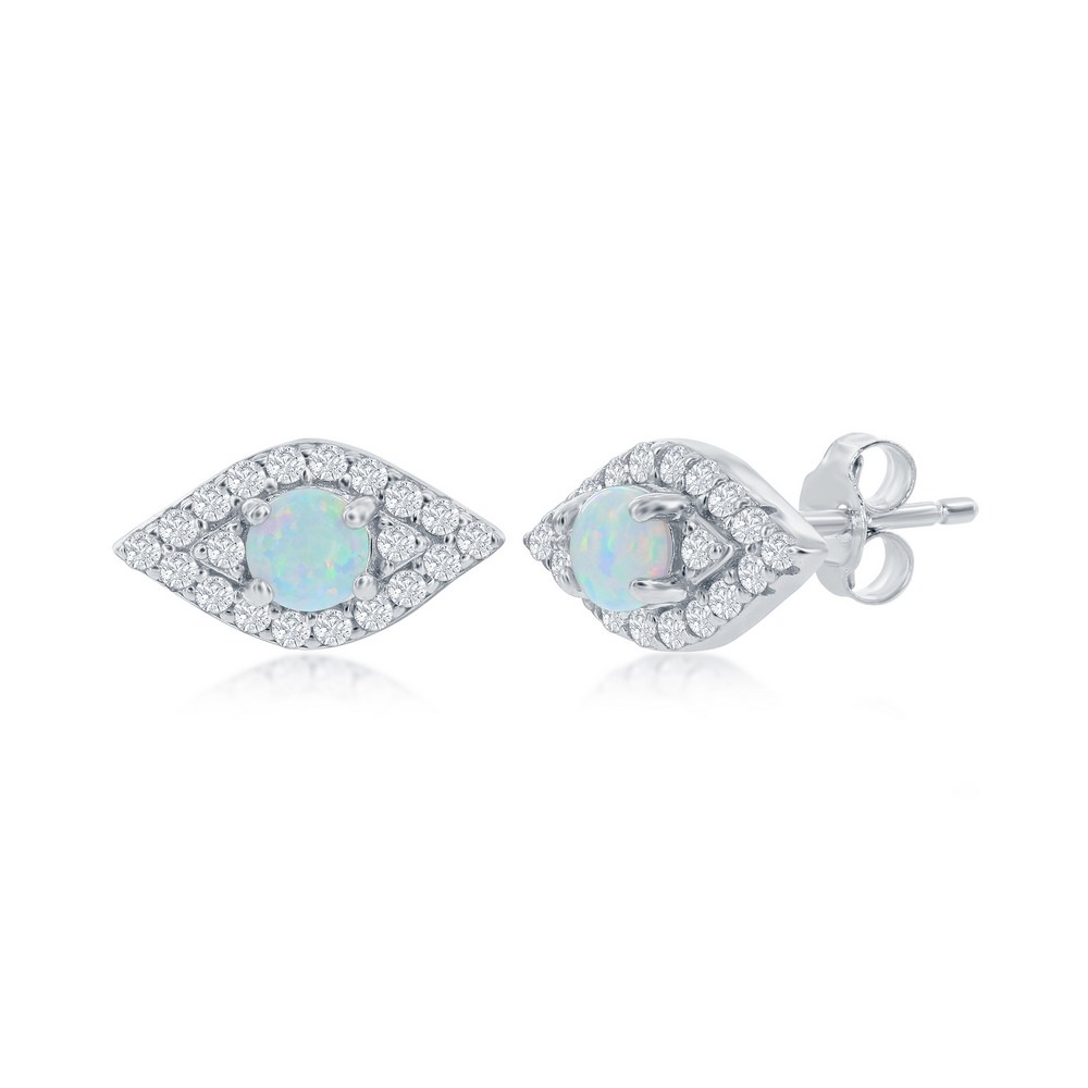 Sterling Silver White Opal & CZ Evil Eye Stud Earrings