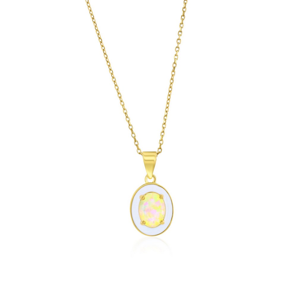Sterling Silver White Opal & Enamel Oval Pendant – Gold Plated