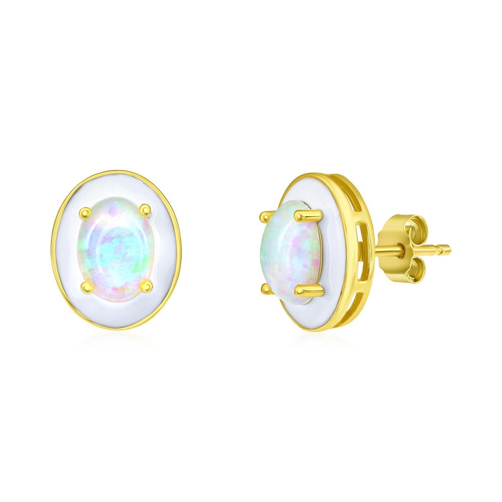 Sterling Silver White Opal & Enamel Oval Studs – Gold Plated