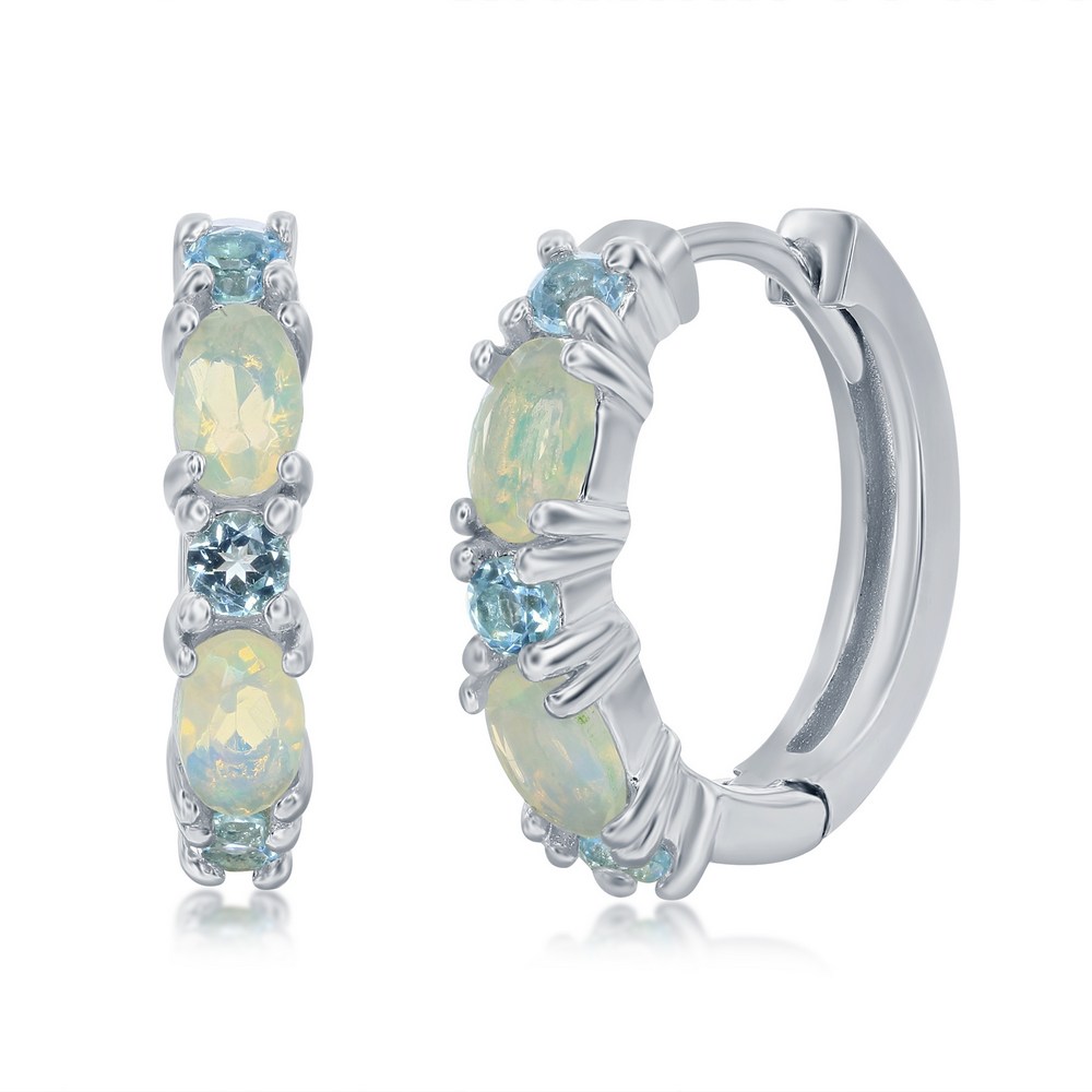 Sterling Silver White Opal & London Blue Topaz 18mm Hoop Earrings