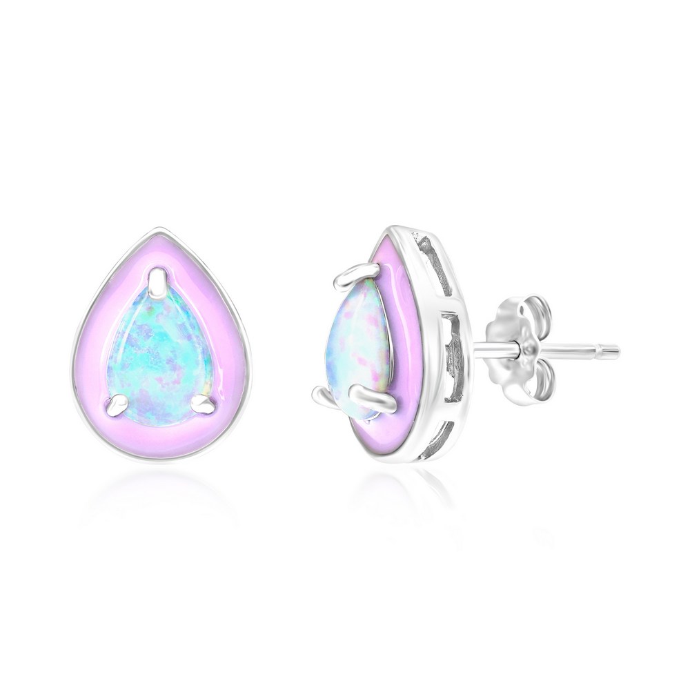 Sterling Silver White Opal & Pink Enamel Pearshaped Studs